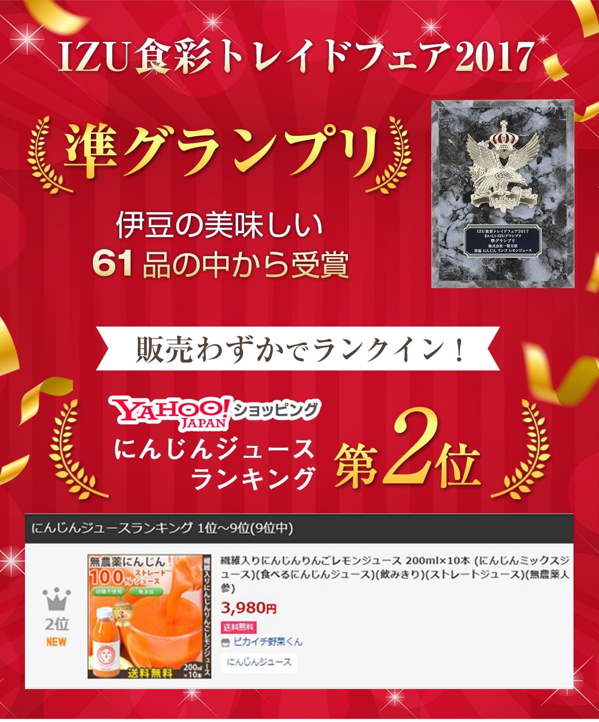 ・こちらの商品は光食品の「有機にんじんジュース」、JAふらの(富良野)の「にんじん100」、順造選の「元気一杯にんじん100%」の商品ではございません。